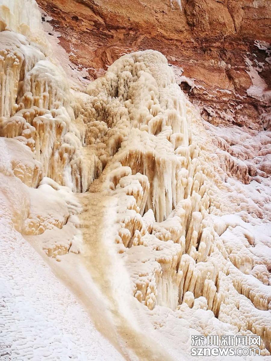 从天而降的奇观!甘肃永靖黄河赤壁现壮观冰瀑