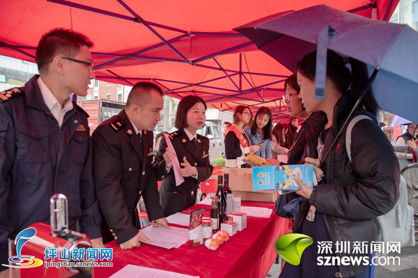 在活动现场,市市场监督管理局坪山局工作人员向市民派发法律法规读本、消费常识等资料,播放有关消费维权、食品药品安全、禁毒等视频,受理消费投诉,提供专业的法律咨询服务,还提供食用农产品快检服务,专题解答群众药品、医疗器械、化妆品等方面的疑难问题,着重介绍保健食品与药品的区别,减少用药误区,提醒消费者保健品不能代替药品。坪山区消委会推出了“扫公众号,送小礼品”和抽奖活动,广泛宣传“坪山区消委会”微信公众号,吸引了不少过往群众。