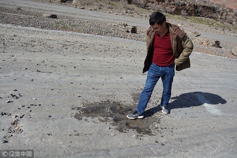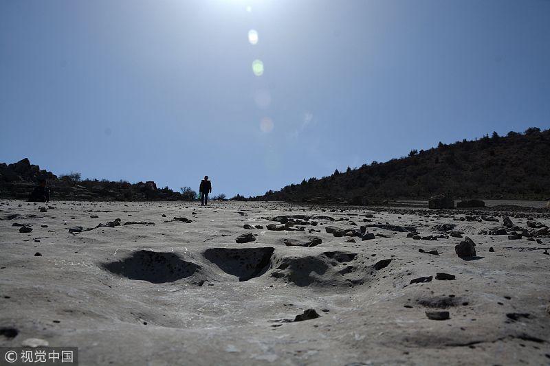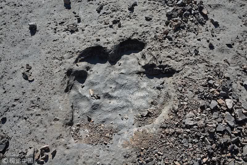 当地时间2019年3月16日,与乌兹别克斯坦和阿富汗交界的土库曼斯坦东部山区,一处大斜坡上留有众多恐龙脚印。据科学家考证,这是1亿5000万年前恐龙踩下的脚印化石,周边地区共发现有2500多个恐龙脚印。最大的恐龙脚印长约80厘米,宽约65厘米。