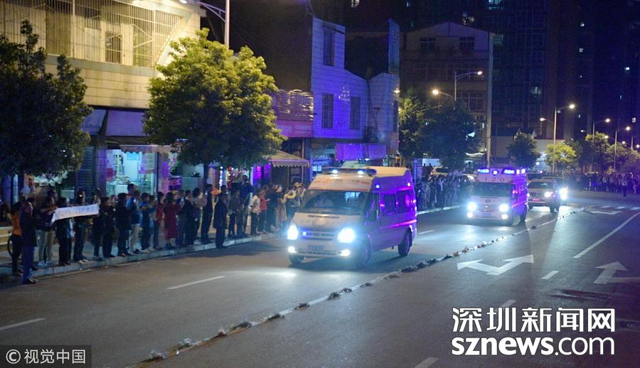 2019年4月2日深夜,四川凉山,运送6名牺牲人员遗体的车队抵达西昌城区,民众夹道迎接英雄。四川凉山州木里县雅砻江镇立尔村境内的“3•30”森林火灾,最后一批6名牺牲人员遗体于当日运抵西昌。此前已有23名牺牲人员遗体抵达西昌殡仪馆。另有一名牺牲人员遗体随家属意愿留在当地安葬。刘忠俊(四川分社)/中新社/视觉中国