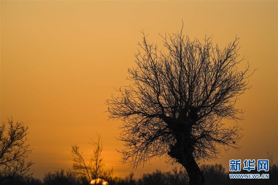 这是在依明家附近拍摄的位于塔克拉玛干沙漠腹地的胡杨(3月18日摄)。