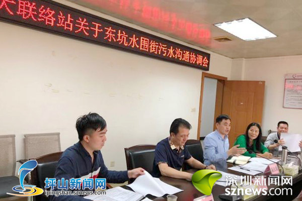 深圳新闻网坪山讯(记者 杨涛 通讯员 谢翠敏)5月7日上午,坪山区龙田街道老坑人大代表社区联络站组织区人大代表召开关于老坑社区东坑村水围房屋污水排放问题协调会,区人大代表黄晃银、黄思贤,老坑社区主要负责人,东坑居民小组代表以及区检察院、区水务局、设计院、项目施工队等相关负责人参加此次会议。