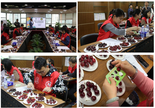作为比较试验重要的一环,主观测评根据微信报名情况,选出二十位车厘子爱好者(志愿者)现场对参评的9款车厘子进行盲测(在不知道品牌信息情况下进行品尝打分)。在规定时间内,每位参评员对测评的车厘子打分,根据累计分数,推出车厘子口感排名榜单和综合星级榜单。测评涉及的指标参考GB/T26906-2011樱桃质量等级。