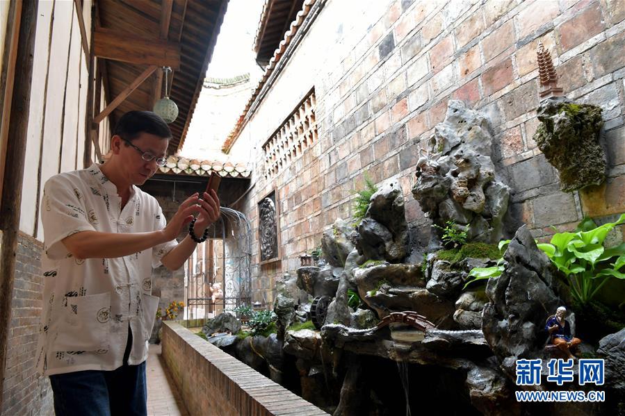 住客在万载古城的一家特色民宿内拍摄照片(6月6日摄)。