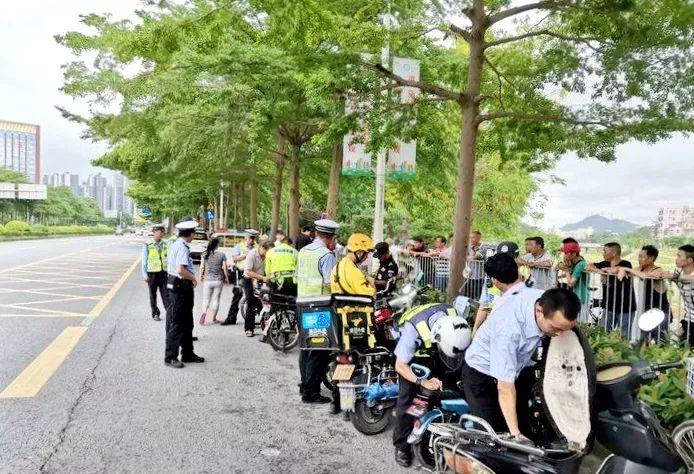 6月12日,坪山交警大队共设置六个整治组,出动警力71余人次。为确保行动取得实效,各中队执勤警力均提前到位,对辖区内快递、外卖等送餐行业电动车违法较多路段、电动三轮车较多路段及摩托车、电动自行车兜客揽客聚集3辆以上的点位进行全覆盖。