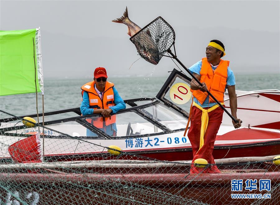6月22日,博湖县的鱼把头将开湖季打的第一网鱼捞起。