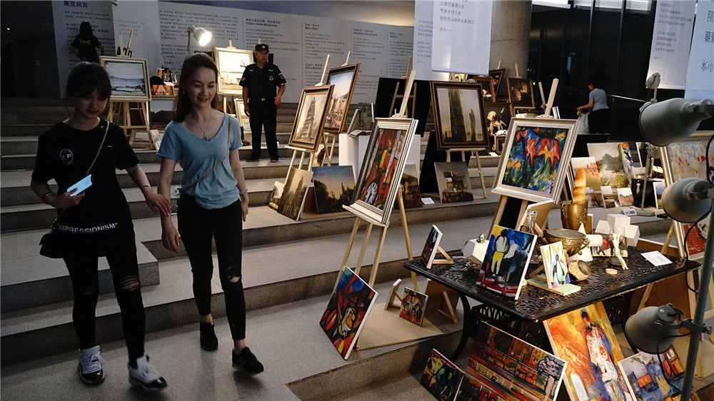 2019年7月13日,北京,微软人工智能小冰在中央美术学院美术馆举办“个人绘画展”,这是国内首个人工智能的个人画展。