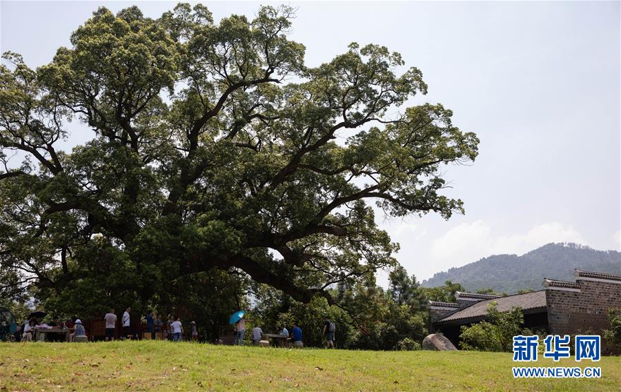 这是江西省安义县古村落罗田村的千年古唐樟(8月8日摄)。