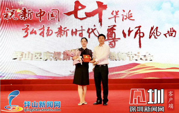 深圳新闻网坪山讯(见圳客户端、深圳新闻网记者 杨涛)在第35个教师节来临之际,为集中展示坪山区教育系统深入学习贯彻习近平新时代中国特色社会主义思想、全面贯彻落实全国教育大会精神的进展成效,展现广大教师爱国奋斗、立德树人的精神风貌,激励全体教育工作者不忘初心、牢记使命,办好党和人民满意的教育,9月9日,坪山区举行庆祝第35个教师节大会,对2018-2019学年度教育工作先进单位和先进个人进行表彰。