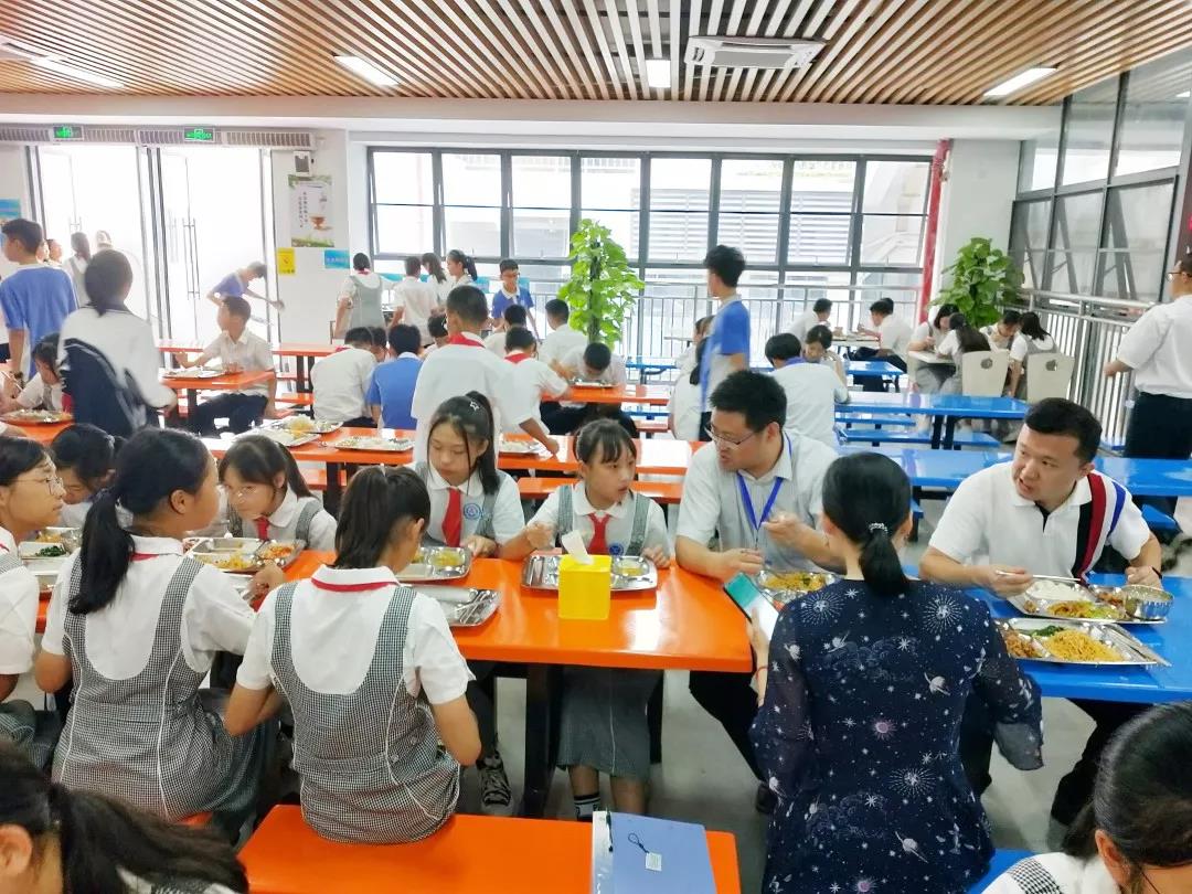 开学第一餐,安国强校长率先值班,陪学生们吃好开学第一餐,并跟同学们拉家常。安校长了解他们的学习生活情况,鼓励他们在新学期刻苦学习,取得好成绩。