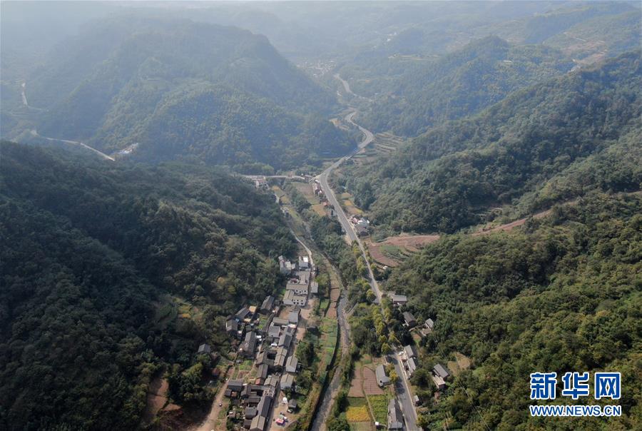 这是位于天姥山脚下的班竹村(10月24日无人机拍摄)。浙江省新昌县境内的班竹村位于天姥山脚下,被称为“天姥门户”,曾是浙东“唐诗之路”上的驿站。近年来,班竹村依托深厚的文化底蕴大力发展乡村旅游,全村“人人参股、户户分红”,将整个村庄打造为旅游综合体,今年以来班竹村旅游收入已超过800万元。