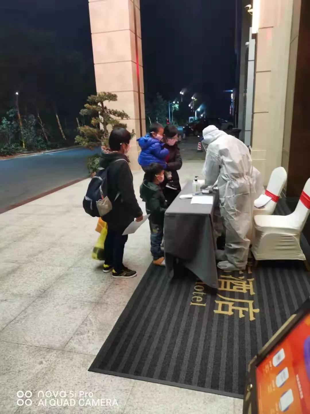 1月31日晚,江海斌及同事连夜加班加点,迅速安排观察人员的登记信息采集、安抚观察人员情绪等,工作持续至凌晨才回到酒店休息室。