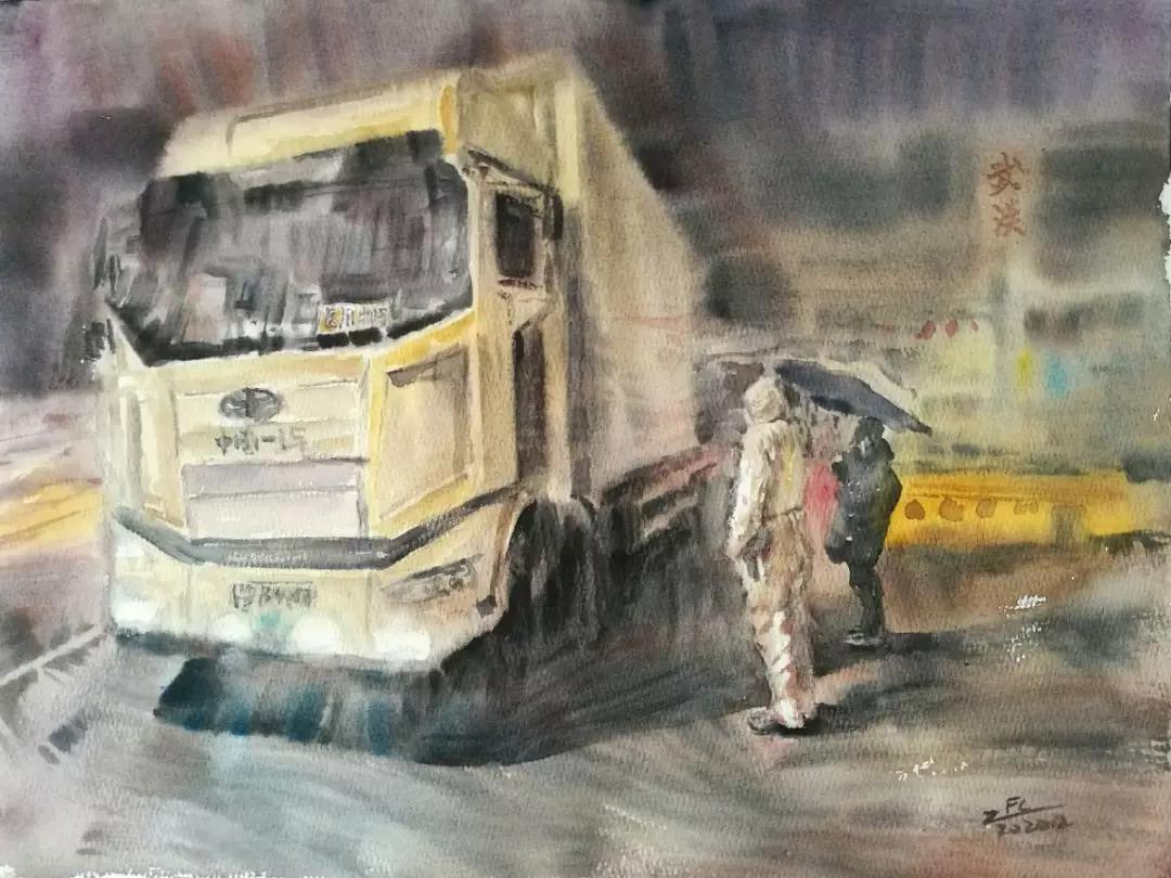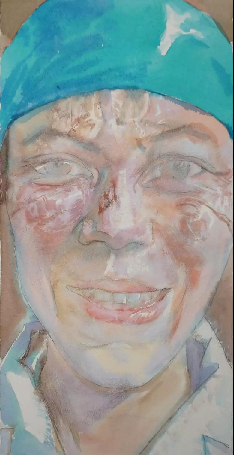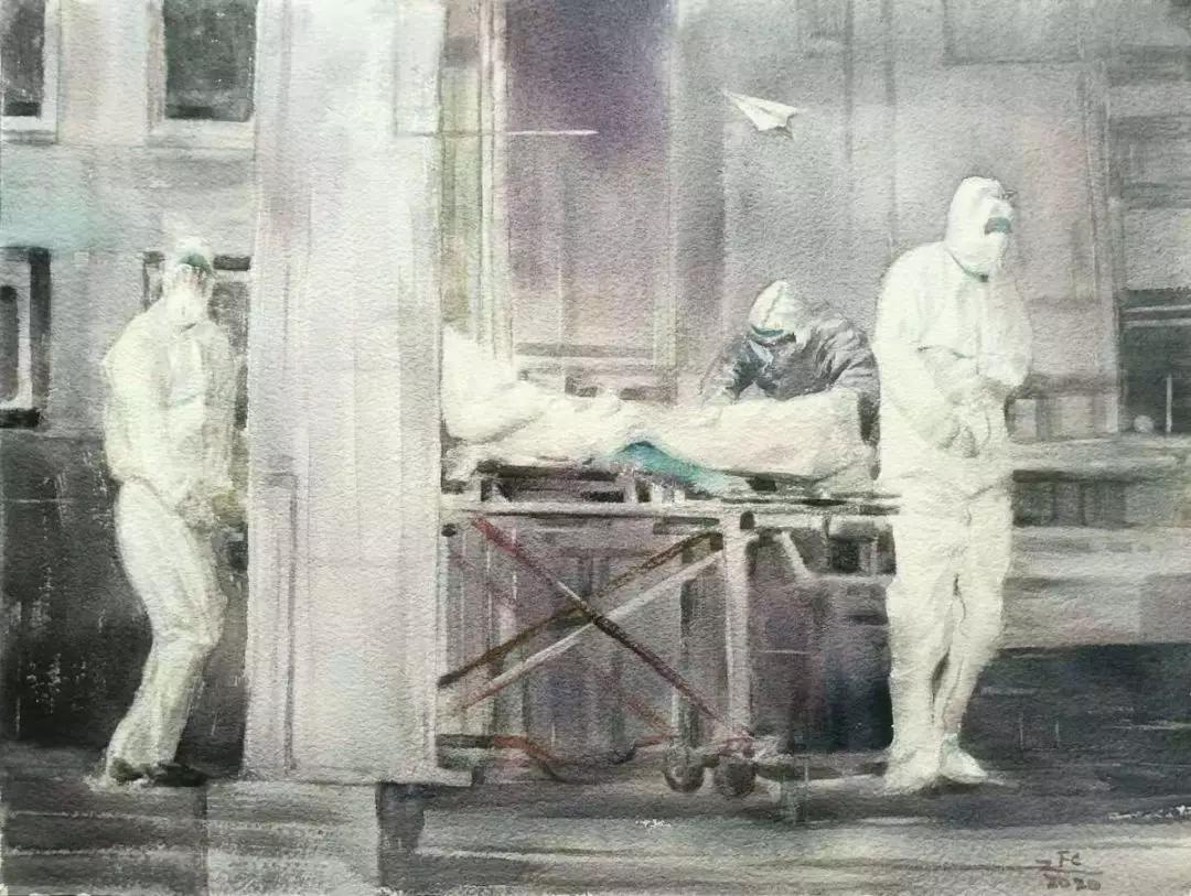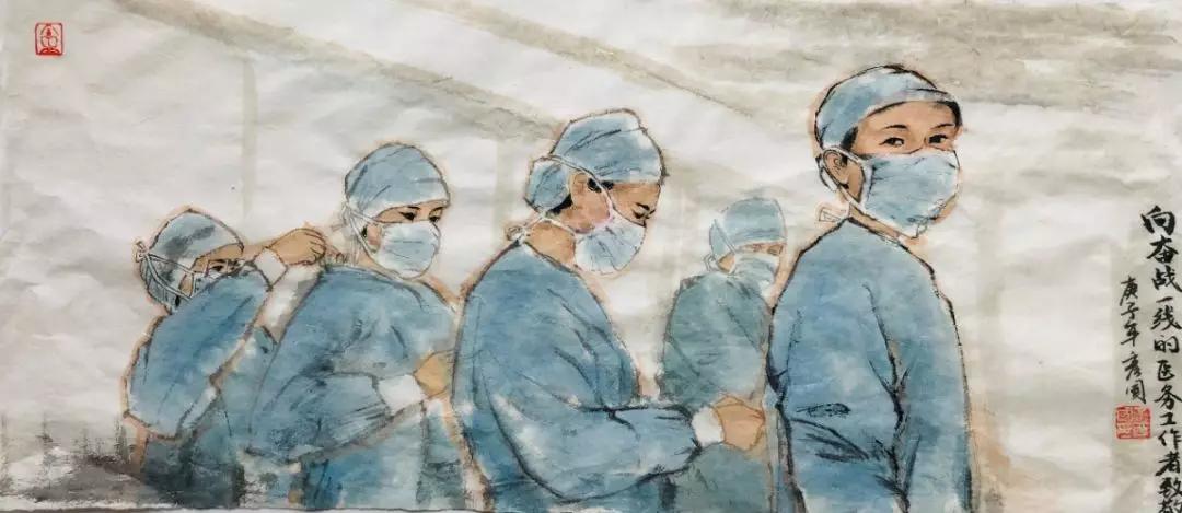 丁彦国作品《向奋战在一线的医务工作者致敬》