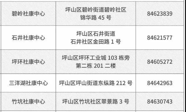 坪山区共有26家公立医院社康中心,此次坪山区开放的6家社康中心也是深圳市首批预防接种门诊。