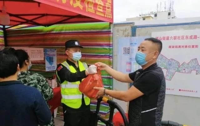 从东成路疫情防控检查点设立的那一天开始,附近一家水果店老板林先生就时不时拿出自己店里的一些水果,送给检查点的工作人员,他说:是为了表达对坚守在一线防控工作人员的感谢,更是以自己的行动参与到疫情群防群控工作当中。