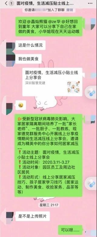 线上开展“抗疫情齐助力”短视频助力、“女神我想对你说”、“三八”妇女节线上表白、儿童线上绘本阅读等活动,儿童线上绘本阅读和疫情期间儿童高效时间管理电子书领取等活动,共72人参与。为两新企业员工“坪安返程”路费报销提供咨询服务10余人次,根据员工需求和实际情况提供详细返深注意事项与指引1份,线上收集园区生产生活环境卫生和安全问题,并及时协调物业解决,提供线上咨询并及时回应疫情期间的园区企业和员工多种需求,打造企业员工暖心大后方。