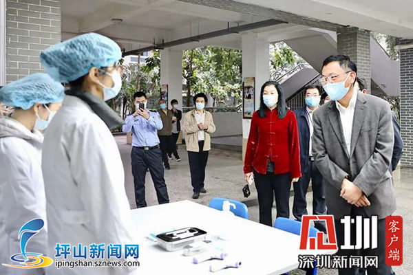 在坪山高级中学,李勇实地检查了该校红外体温测量区、学生食堂、校医务室等,并详细询问和了解师生返深返校、医护人员配置、防疫物资储备、健康观察区设置、食堂就餐安排、学生住宿安排、校园环境消杀、防疫培训、应急处置预案、高三备考教学等各项准备工作。他对区教育局指导学校开学准备工作做出的周密部署、区各单位密切配合支持予以充分肯定。