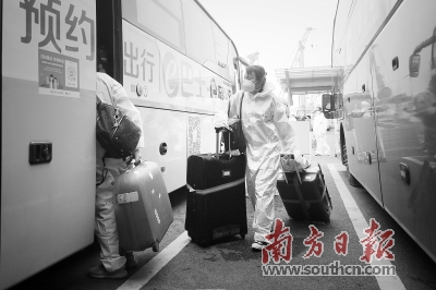在深圳湾口岸,巴士集团转运入境人员到各个区。南方日报记者朱洪波摄