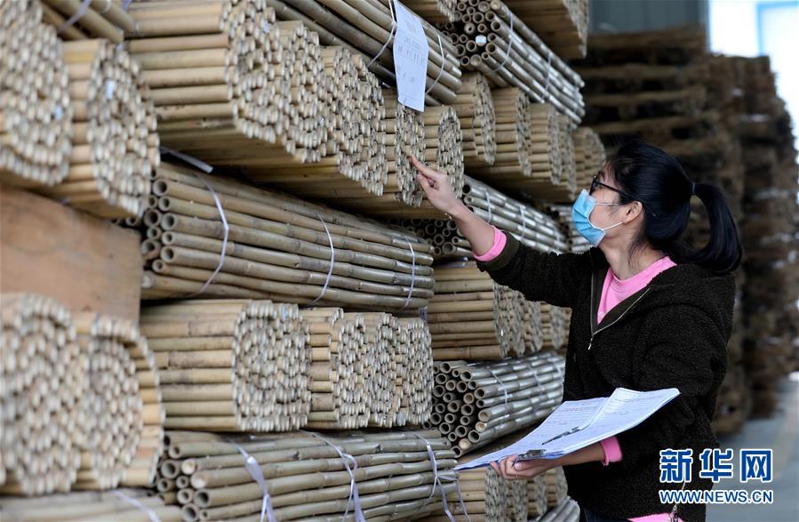 4月24日,在广西融安县农产品加工暨粤桂扶贫协作产业园的一家竹制品外贸企业,工作人员在仓库清点竹制品。日前,广西柳州市融安县农产品加工暨粤桂扶贫协作产业园内的企业已全部复工复产,园区竹制品外贸企业正在加紧生产,在完成外贸订单的同时主动对接国外市场,研发新的竹制品,提高产品附加值。
