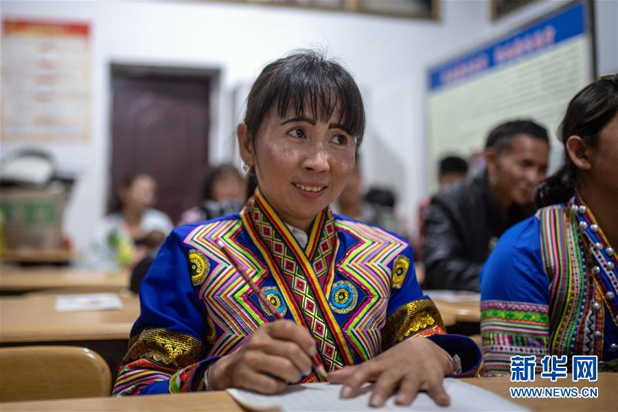 4月10日,在云南省勐海县布朗山乡曼囡村曼班三队,娜四在村里上夜校。新华社记者胡超摄
