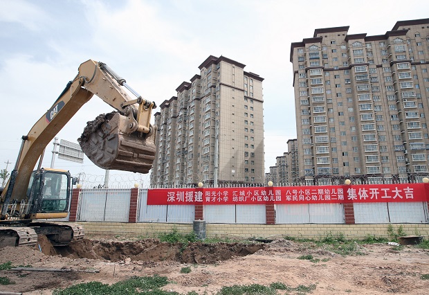 记者在喀什市阳光小学扩建工地上看到,施工现场热闹非凡,机声隆隆,“深圳援建”字样的横幅格外醒目,工人们正在热火朝天地进行施工。据悉,深圳援建的上述6所学校(幼儿园)工程项目总投资逾1亿元,均为援疆资金,6个项目按照计划,将于今年秋季全部投入使用。项目完工后,将为喀什市新增小学学位4000余个,幼儿园学位1350个,惠及师生10000余人。这一批项目的开工建设,将极大的缓解喀什市小学学位紧缺及城镇小区“入园难”“入学难”难题,满足周边区域广大群众的入学需求。