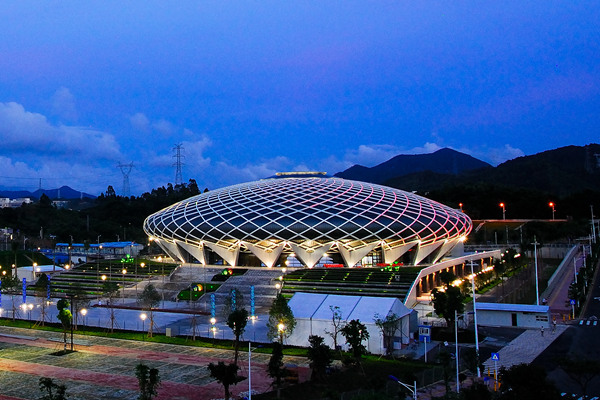 坪山体育中心体育馆,是2011年大学生运动会篮球项目的分会场,整个场馆建筑造型新颖别致,远眺如一巨型飞碟浮于蓝天青山之间。这里设有室外篮球场、室外篮球场和羽毛球场,是市民运动健身的好去处。