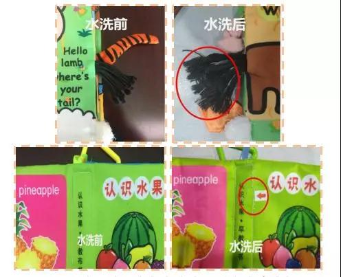 ▲2款婴幼儿布书水洗外观测试前后对比图