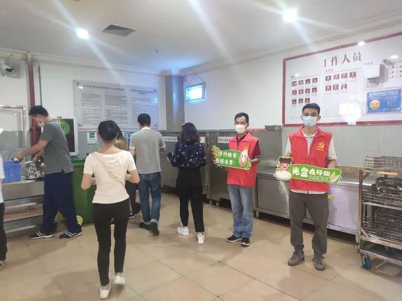 坪山街道还在街道机关食堂设置党员督导点,组织党员志愿者参与督导服务,他们身着红马甲、手里举着“光盘在行动,从我做起”“节约粮食,拒绝浪费”等标语牌,站在党员督导点处,提示用餐人员自觉践行“光盘行动”,同时对厨余垃圾分类进行指导。