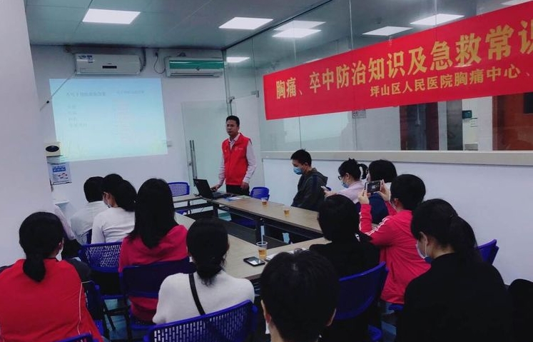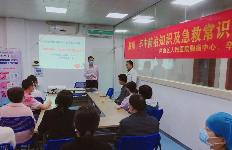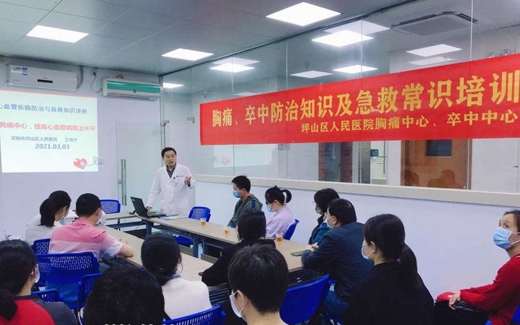 深圳新闻网坪山讯(见圳客户端、深圳新闻网记者 杨涛 通讯员 黄彩云)为提高广大群众对胸痛、卒中的重视,普及脑中风与胸痛救治知识,2021年3月3日,坪山区人民医院胸痛中心、卒中中心医务人员走进和平社区健康服务中心,联合社康中心开展了“胸痛、卒中防治知识及急救常识培训”活动,向社康医务人员及周边居民进行相关知识培训,受到了热烈欢迎。