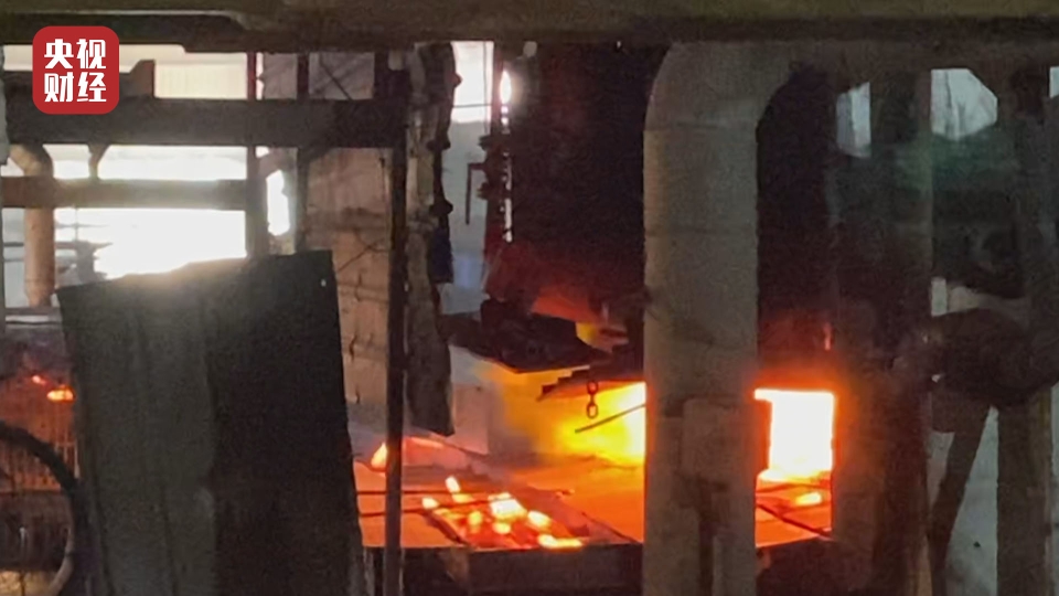 记者看到,厂棚里面有一个火炉火光通红,工人们正在加工钢筋,干得热火朝天。粗一点的旧钢筋被吊起送进火炉,经过加热、拉长、裁切等步骤,出来时就是新的钢筋了。