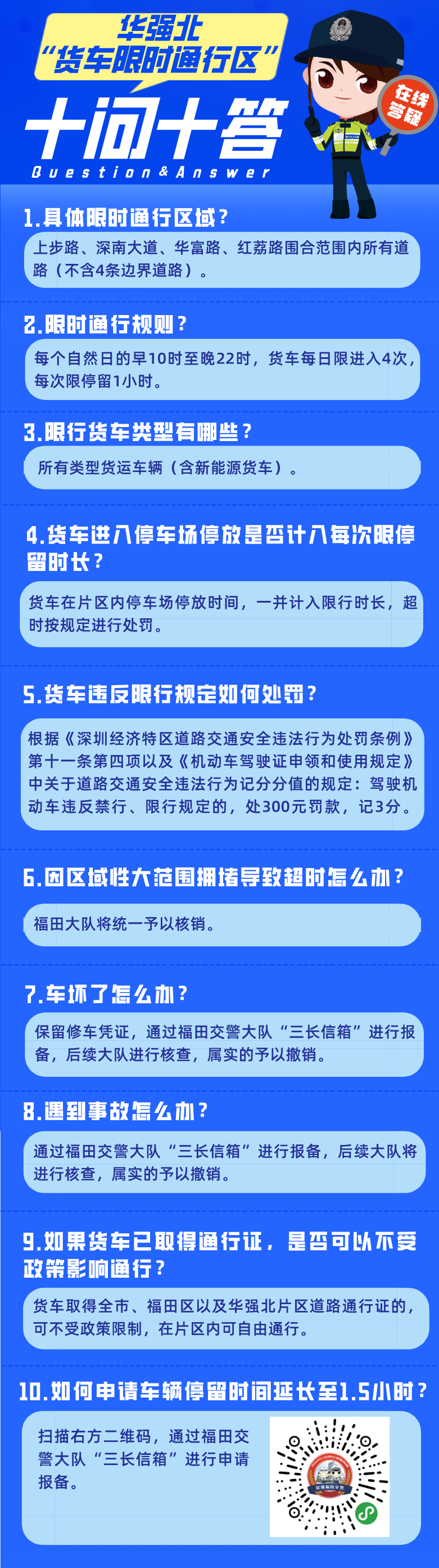 如果对“货车限时通行区”措施,大家有任何意见或者建议,也可以通过深圳交警微博、微信,“三长”信箱等渠道向交警反映。
