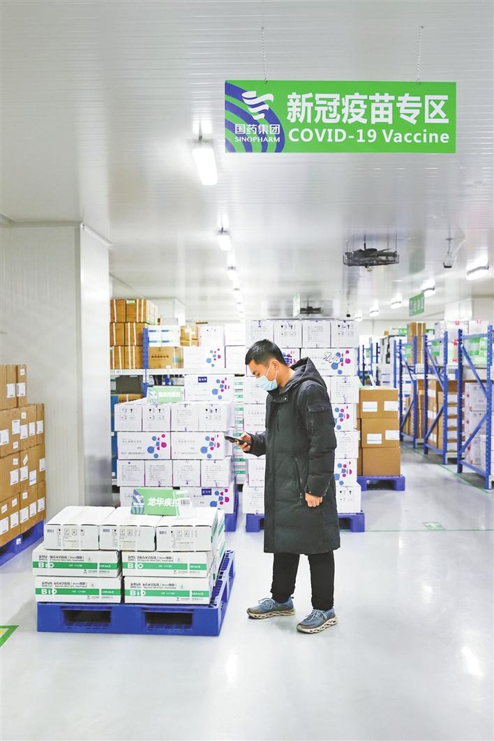 “每一支新冠疫苗都有一个独一无二的监管码。疫苗出库时,需要按订单扫码校验才能出库,接种点使用疫苗时,医护人员也需扫码校验后再使用,确保每一支疫苗来源去向可溯源。”国药集团工作人员王艳表示。