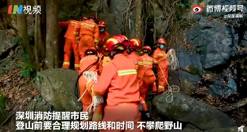 4月4日9时55分,深圳消防接报,位于梧桐山燕子崖0902号路标附近有人摔下山崖,亟待救援。接警后,黄贝岭消防救援站及其下辖小型消防站立即出动4车24人赶赴现场处置。