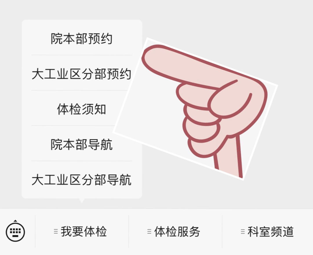 欢迎广大受检者提供宝贵的建议,点击“科室频道”中“科室满意度”,让医院更好地提供优质服务。