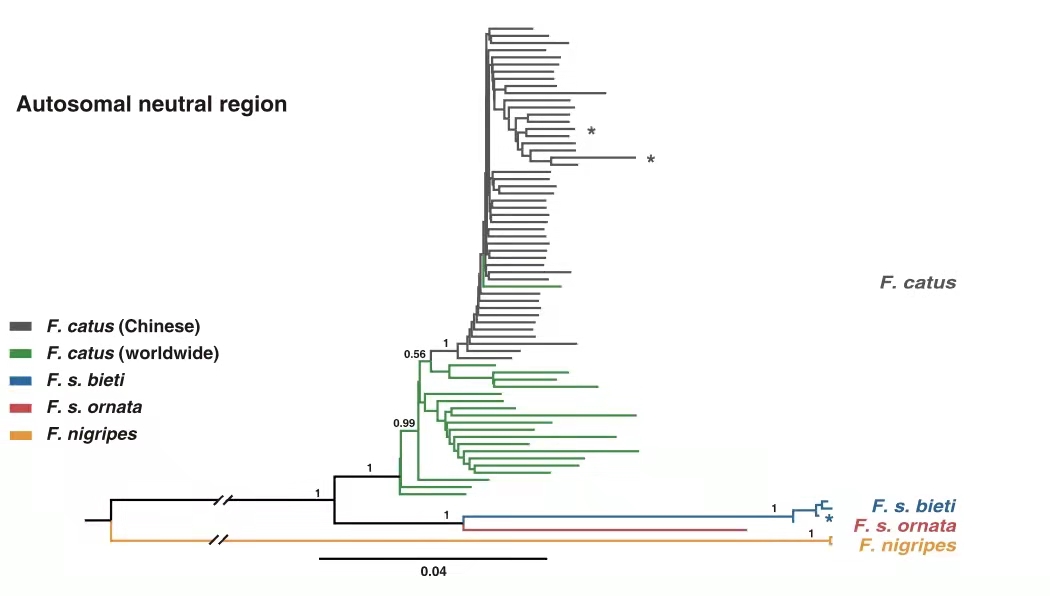 该研究显示,中国本土家猫与世界家猫种群具有相同的遗传背景,意味着东亚的家猫同样可追溯自近东或北非地区的非洲野猫,从而支持了世界家猫驯化的单起源假说。