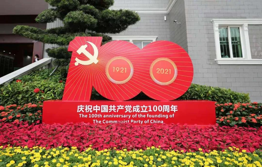 东江纵队纪念馆门口设置了一个红色雕塑景观装置引得市民驻足观望