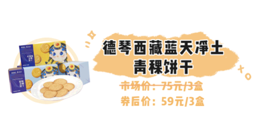 第一个推荐是青稞饼干!青稞是健康食品的扛把子,低升糖+高膳食纤维,降血脂、降胆固醇、调节血糖水平和提高免疫力都是它的强项。这款饼干直接选用世界青稞之乡——日喀则产的青稞作原料,生长环境、青稞品质直接秒杀普通产区。口感很酥脆,入口是牛奶的醇香,还能明显感觉到谷物的香气,越嚼越香。减肥健身人群可以直接当作低卡零食解馋,也可以给家里长辈和小孩备上,比吃其他饼干、薯片更加健康。