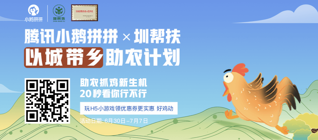 读特客户端•深圳新闻网2021年7月5日讯 (深圳特区报记者 秦绮蔚 通讯员 庞仁松)为了做好消费帮扶,深圳市扶贫协作和合作交流办、深圳海吉星“圳帮扶”平台和小鹅拼拼日前联手推出了创意公益助农活动,用超有趣的H5抓鸡小游戏,为助农产品“带货”。