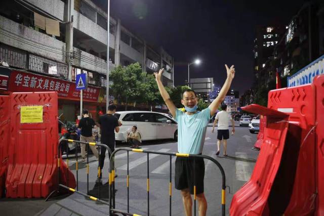 即将“解封”,福围居民高举双臂,满面笑容