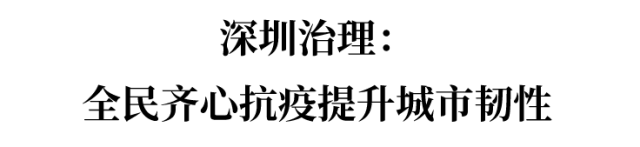 下沉党员干部、社区工作人员、医务工作者、警察、网格员、志愿者……深圳治理体系和治理能力现代化的一个个参与者和推动者,在疫情防控的大考中齐心协力、并肩前行,让深圳这座城市展现出强大的韧性。
