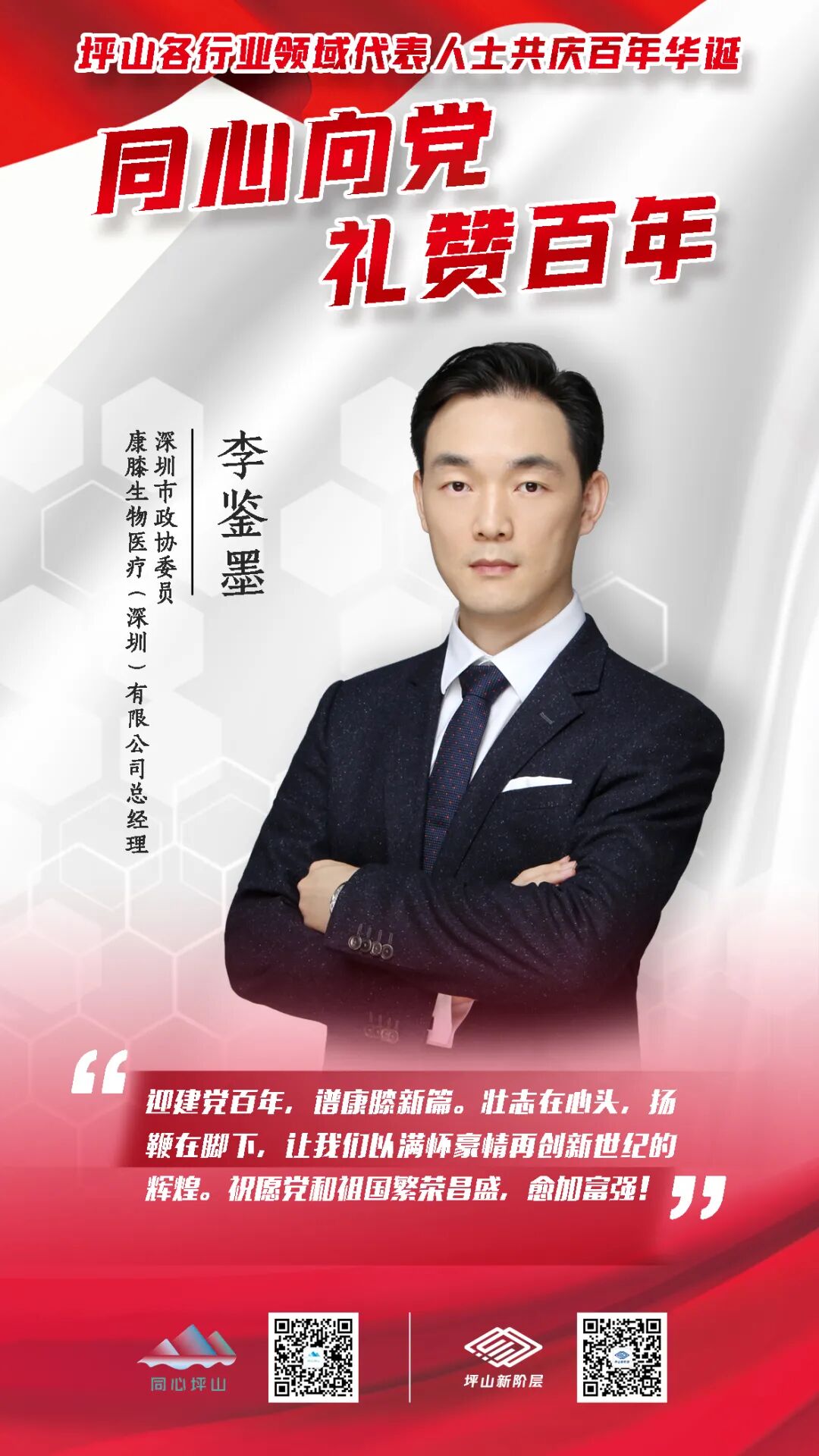 今年是建党100周年,作为统一战线领域的一员,我倍感骄傲与自豪。我将利用自身领域优势,致力于解决新型生物医用材料的“卡脖子”问题,打造关键核心技术,加大新技术及新产品研发,汇聚培养创新人才,加速成果产业化,不仅在本职工作中发挥专业优势,还要主动融入国家发展建设大局,积极发挥统一战线的影响力,为全面建设社会主义现代化国家,深圳建设成为社会主义先行示范区,以及建设高质量可持续发展的创新坪山作出更大贡献,以实际成绩献礼建党一百周年。