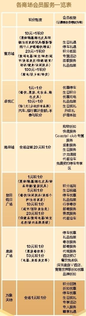 原标题:有的服务多样 有的还可提升 深晚记者亲测6家大型购物中心会员服务
