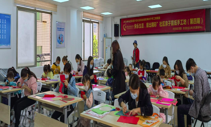 11月13日,沙坣社区举办“亲子手工剪纸”公益培训活动和剪纸艺术成果展。