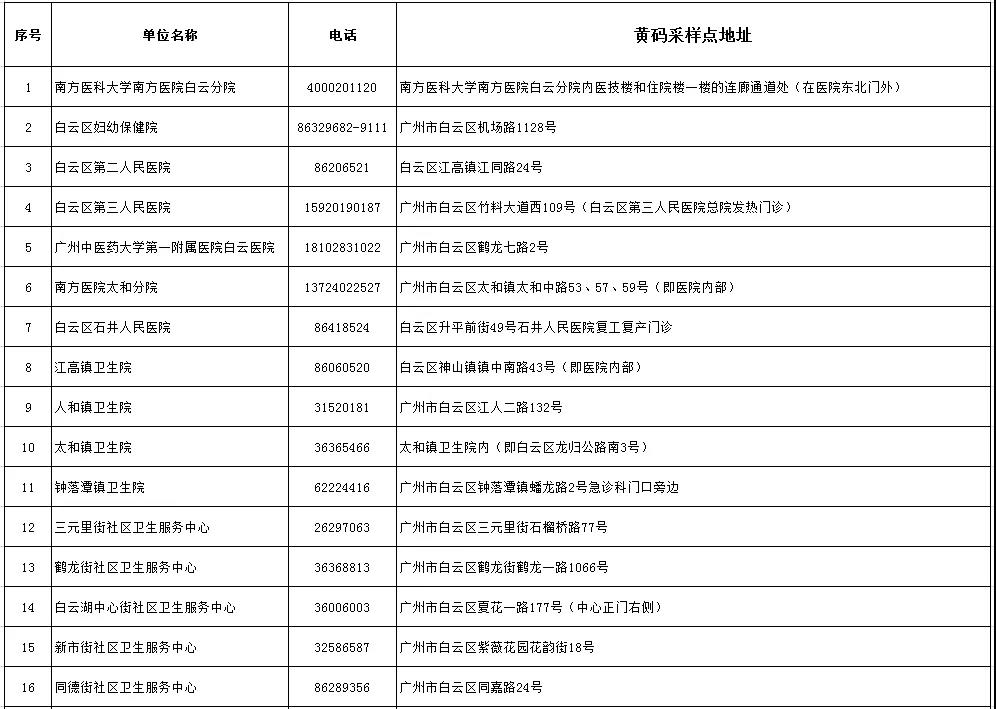 白云区设置的黄码人员临时核酸采样点
