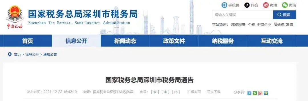 12月22日,深圳市税务局发布通告称,此前尚未关注到自身涉税问题或自查整改不到位的明星艺人、网络主播等,应于2021年12月31日前向税务部门主动报告和纠正涉税问题。