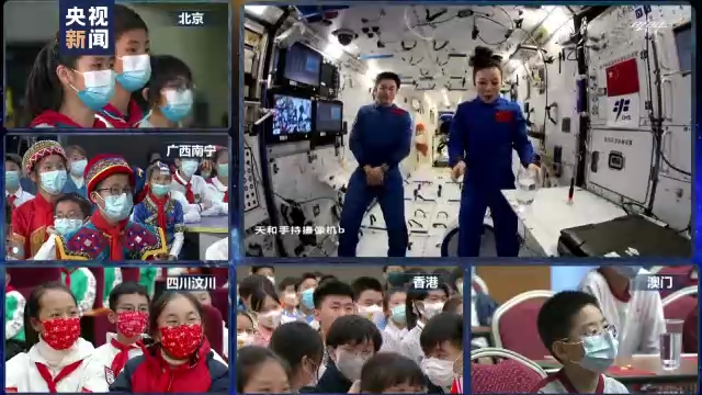 在约60分钟的授课中,航天员介绍展示了空间站工作生活场景,演示了微重力环境下细胞学实验、人体运动、液体表面张力等神奇现象,并讲解了实验背后的科学原理。
