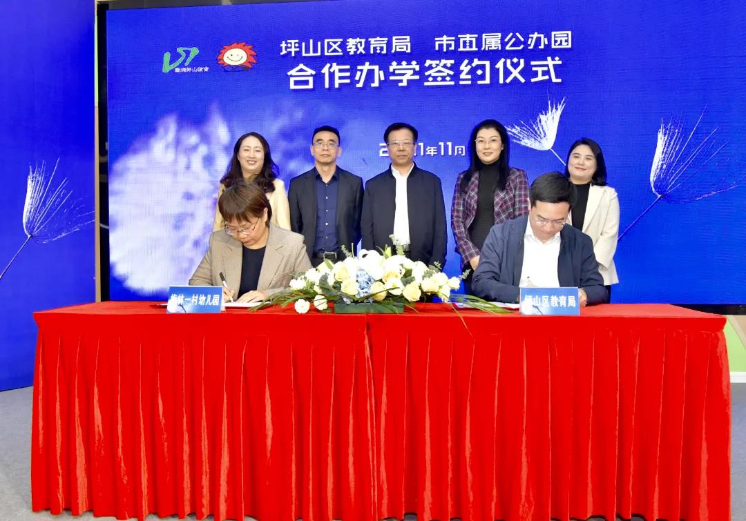 11月15日,坪山区教育局和深圳市梅林一村幼儿园在坪山区紫竹幼儿园举行合作办园签约仪式。深圳市教育局副局长王水发和坪山区领导吴志柳在签约仪式上致辞,签约仪式由区领导彭尧主持。市教育局学前处处长王巍、副处长王素娟、坪山区教育局分管领导、梅林一村幼儿园园长姚艺、部分公办园园长代表、富润乐庭幼儿园和紫竹幼儿园教工代表共同参与见证。