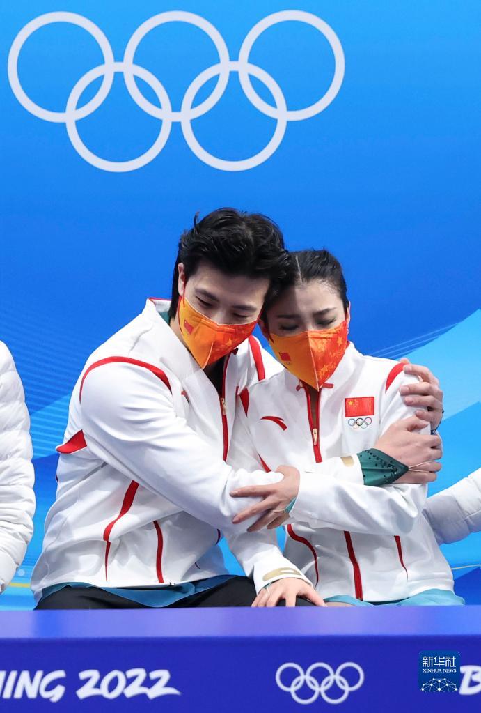 2月14日,中国选手王诗玥(右)和柳鑫宇在等待成绩。