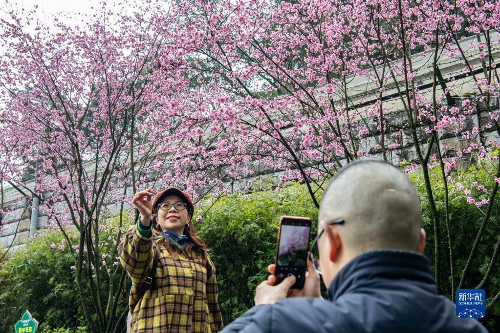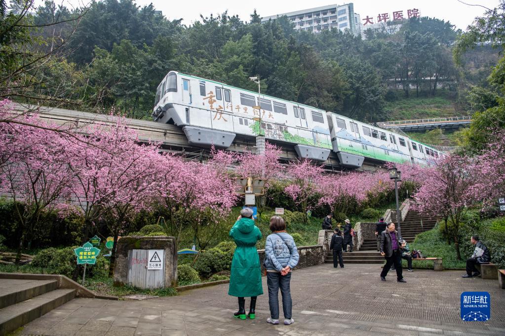 立春以来,气温回升,重庆轨道二号线李子坝站附近的红梅花陆续开放,轻轨穿梭花海,引来不少市民游客“打卡”。