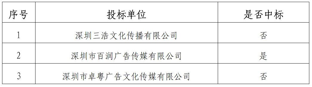 为体现“公开、公平、公正”的原则,现对以上中标结果公示三天。(投诉电话:0755-28401123)